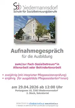 Einladung zum Aufnahmegespräch am 29.04.2026 ab 12:00 Uhr
